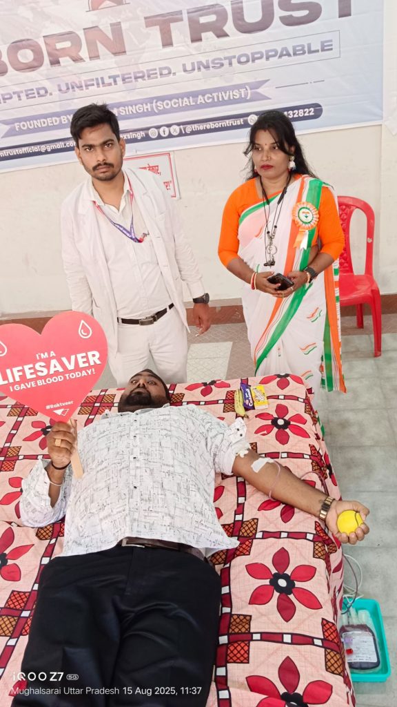 १५ अगस्त २०२५, स्वतंत्रता दिवस के पावन अवसर पर रीबॉर्न ट्रस्ट (संस्थापक: सतनाम सिंह, सोशल ऐक्टिविस्ट) द्वारा रविनगर – काली मंदिर रोड, शुभ कामना एकेडमी में रक्तदान एवं स्वास्थ्य जागरूकता शिविर का आयोजन सफलतापूर्वक सम्पन्न हुआ।