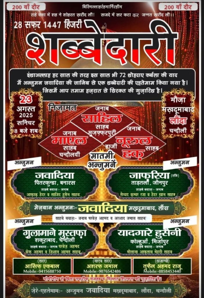 इमाम हुसैन कि याद में मनाया जाता है पचासा23 अगस्त दिन शनिवार को लौंदा चन्दौली में मनाया जाएगा पचासा