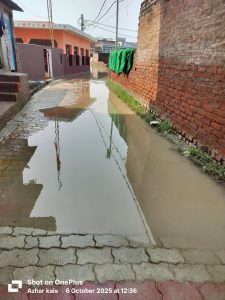 लगातार पानी भरे रहने से स्थानीय लोगों को आने-जाने में भारी कठिनाई का सामना करना पड़ रहा है।
