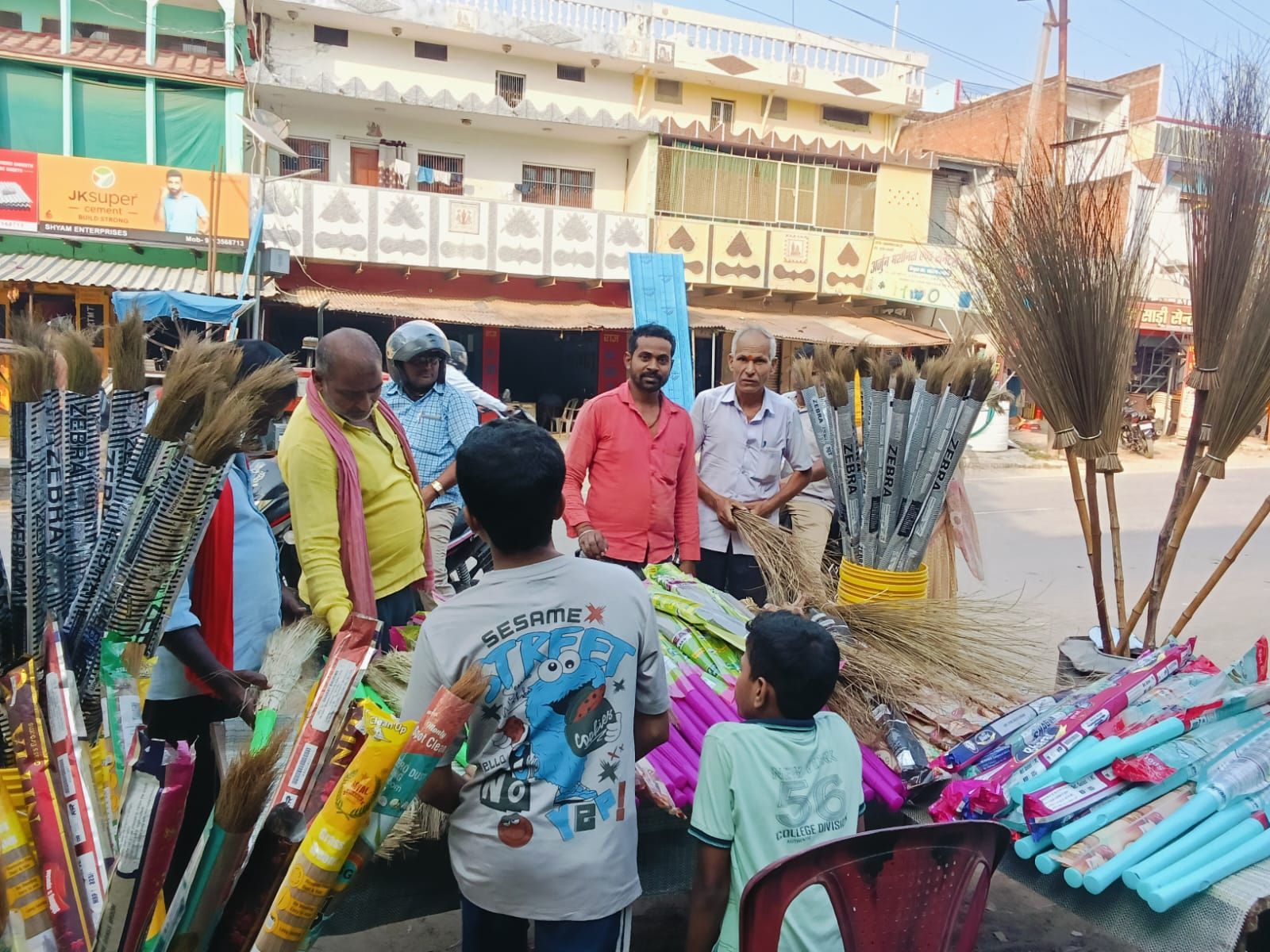 धनतेरस पर झाडुओं की हुयी जमकर ब्रिकीआर्थिक मंदी का दिखा नजाराचहनियॉ चंदौली।धनतेरस के पावन पर्व पर स्थानीय कस्बा व बाजारों में काफी चहल-पहल देखी गयी तथा आर्थिक मंदी के चलते लोगों ने झाड़ूओं की जमकर खरीददारी की तथा जिधर देखे उधर ही दुकानां पर लोग झाड़ूआें की खरीद फरोख्त करते देखे गयें।भगवान धनवन्तरी महाराज की लोगों ने पूजन अर्चन किया तथा अपने सामर्थ्य के अनुसार लोगो ने वर्तन वगैरह तथा लक्ष्मी गणेश की मिट्टियों की खरीददारी कर आस्था की पूर्ति की।इस प्रकार बाजारों तथा कस्बों में देर रात्री तक काफी चहल-पहल देखी गयी मिंदरां में लोगों ने पूजन अर्चन कर मत्था टेका तथा मंगलमय होने की कामना व्यक्त किया। इस प्रकार बलुआ, पपौरा, मोहरगंज, रमौली, मारूफपुर, टाण्डाकला, रामगढ़, कस्बों व बाजारों में धनतेरस पर कफी चहल पहल देखी गयी।