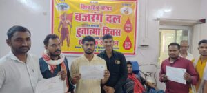 рдЕрдпреЛрдзреНрдпрд╛ рдореЗрдВ рд╢реНрд░реАрд░рд╛рдо рдЬрдиреНрдорднреВрдорд┐ рдЖрдВрджреЛрд▓рди рдХреЗ рджреМрд░рд╛рди рдХрд╛рд░реНрдпрд╕реЗрд╡рдХреЛрдВ рдкрд░ рдЪрд▓рд╛рдИ рдЧрдИ рдЧреЛрд▓реА рд╕реЗ рд╢рд╣реАрдж рд╣реБрдП рд░рд╛рдо рдХреЛрдард╛рд░реА рдЬреА рдФрд░ рд╢рд░рдж рдХреЛрдард╛рд░реА рдЬреА рдХреЗ рдмрд▓рд┐рджрд╛рди рдХреА рд╕реНрдореГрддрд┐ рдореЗрдВ, рд╣рд░ рд╡рд░реНрд╖ рдХреА рднрд╛рдВрддрд┐ рдЗрд╕ рд╡рд░реНрд╖ рднреА рд╣реБрддрд╛рддреНрдорд╛ рджрд┐рд╡рд╕ рдХреЗ рдЕрд╡рд╕рд░ рдкрд░ рд╡рд┐рд╢реНрд╡ рд╣рд┐рдВрджреВ рдкрд░рд┐рд╖рдж рдПрд╡рдВ рдмрдЬрд░рдВрдЧ рджрд▓, рдЪрдВрджреМрд▓реА рдЗрдХрд╛рдИ рджреНрд╡рд╛рд░рд╛ рд╕реНрд╡реИрдЪреНрдЫрд┐рдХ рд░рдХреНрддрджрд╛рди рд╢рд┐рд╡рд┐рд░ рдХрд╛ рдЖрдпреЛрдЬрди рдХрд┐рдпрд╛ рдЧрдпрд╛ред