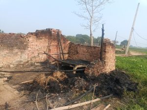 अराजक तत्वों ने मड़हे में लगायी आग जली मवेशी चहनिया चन्दौली
