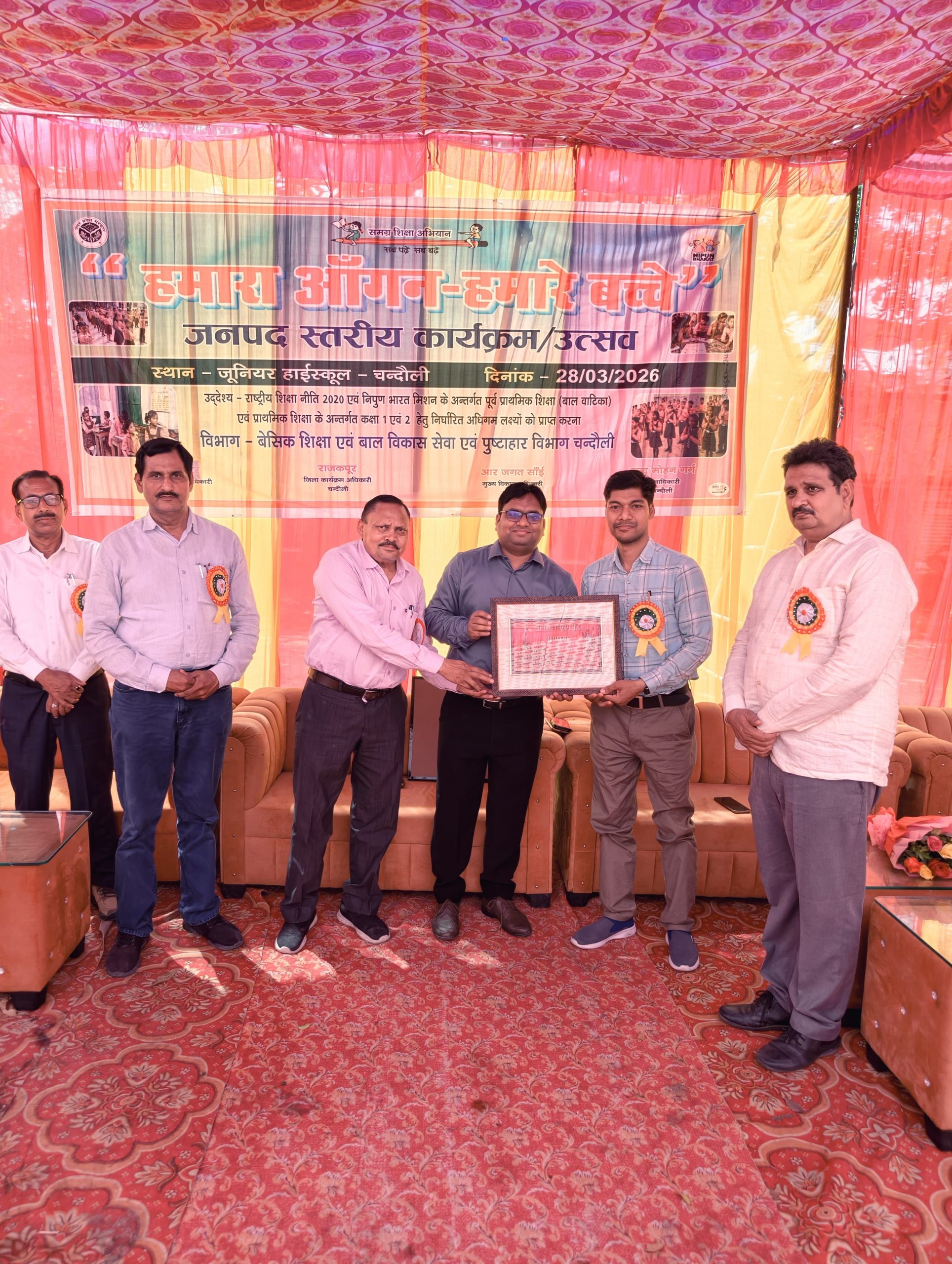जनपद में निपुण सम्मान समारोह एवं “हमारा आंगन हमारे बच्चे” कार्यक्रम का आयोजन गरिमामय वातावरण में संपन्न हुआ। कार्यक्रम की अध्यक्षता जिला बेसिक शिक्षा अधिकारी चंदौली ने की, जबकि मुख्य अतिथि के रूप में डायट प्राचार्य श्री विकायल भारती तथा विशिष्ट अतिथि के रूप में सीडीपीओ चंदौली उपस्थित रहे।