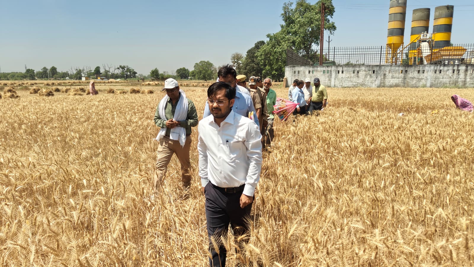 जिलाधिकारी श्री चंद्र मोहन गर्ग द्वारा तहसील सदर के राजस्व ग्राम- धूरिकोट में गेहूं की क्रॉप कटिंग का निरीक्षण किया गया l
