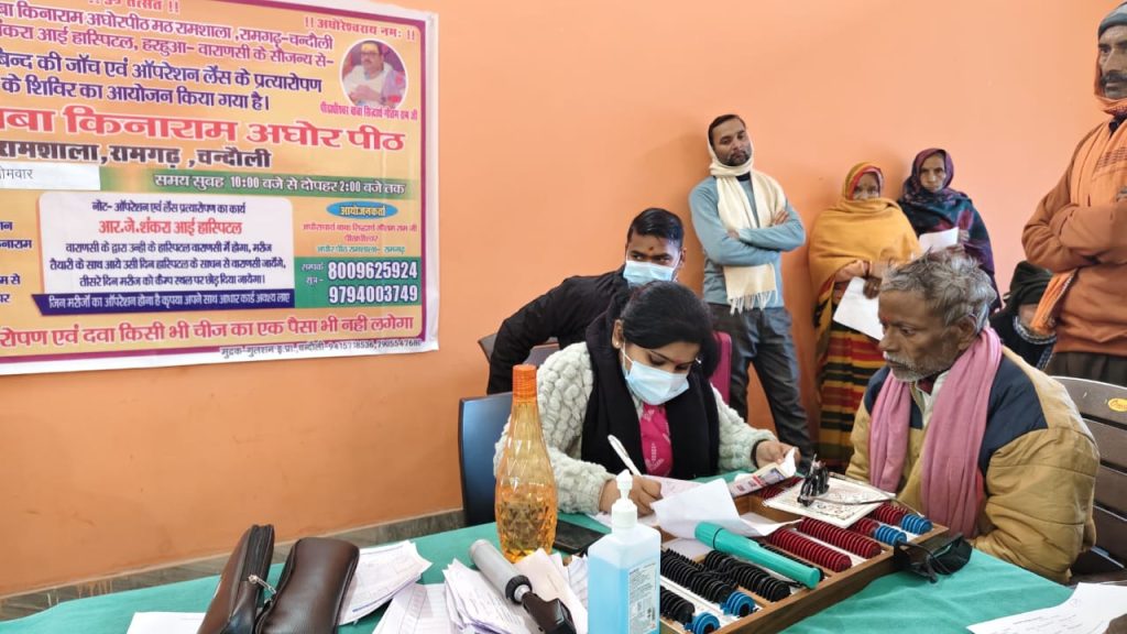 निःशुल्क मोतियाबिंद शिविर में 110 मरीजो की हुई जांच चहनिया चन्दौली।